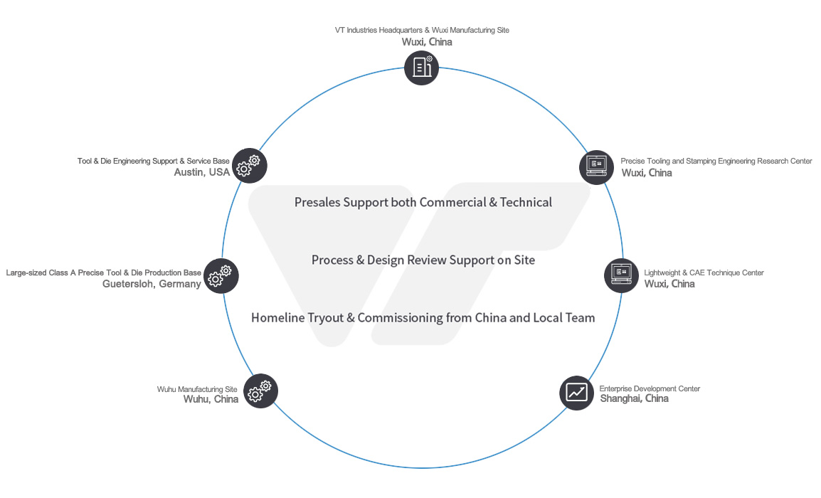 VT Industries designs, builds and delivers world class stamping tools to our customers throughout the world, and we are expertise especially in the medium and the large Progressive tool、Transfer tool and Multiset tool.