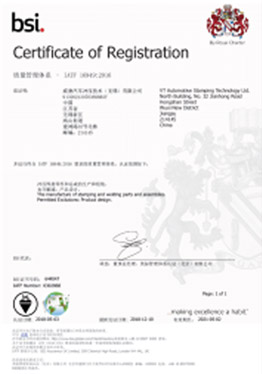 >>VT Stamping Is committed to operate in accordance with a Quality Management System, which is designed to reflect our corporate values and to ensure our compliance with customer requirements and expectations.